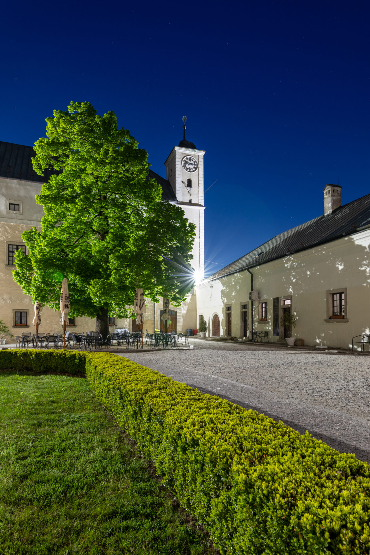 ktorého trasa vedie dvadsiatimi štyrmi bohato zariadenými miestnosťami. Návštevník prechádza salónmi, spálňami, jedálňou i rytierskou sálou, kde si môže prezrieť inštaláciu dobového interiérového zariadenia šľachty od obdobia renesancie po obdobie secesie. Ďalej bude prehliadka pokračovať hradným podzemím, súčasťou ktorého je aj obranný systém hradu. Predpokladaná dĺžka prehliadky je 75 minút.